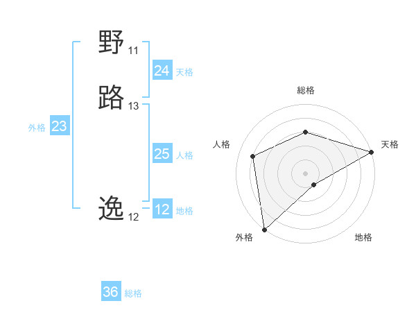 野路 逸さんの天格は24画の5点!