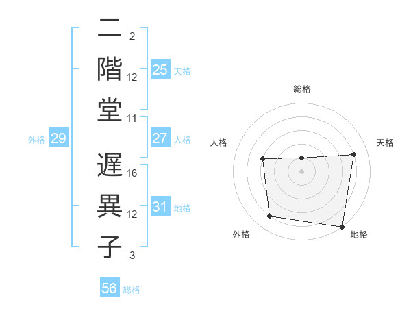 二階堂 遅異子さんを姓名の画数から五運を鑑定