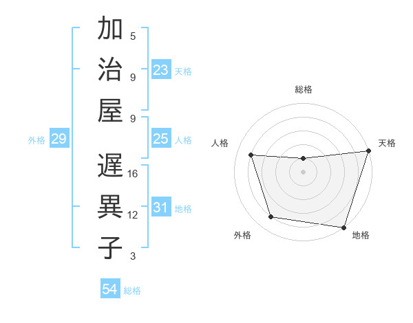 加治屋 遅異子さんを姓名の画数から五運を鑑定