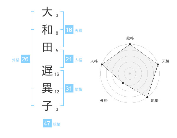 大和田 遅異子さんを姓名の画数から五運を鑑定