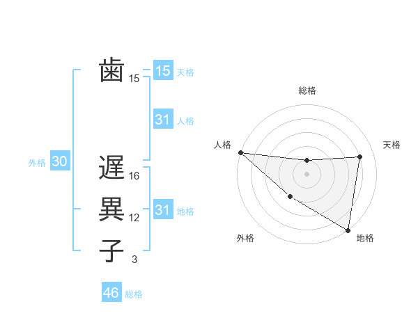 歯 遅異子さんを姓名の画数から五運を鑑定