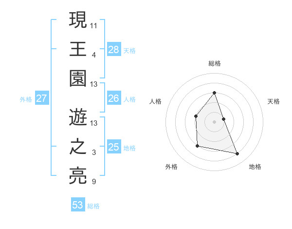 現王園 遊之亮さんを姓名の画数から五運を鑑定