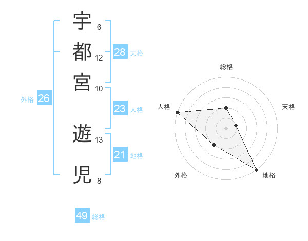 宇都宮 遊児さんを姓名の画数から五運を鑑定