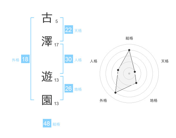 古澤 遊園さんを姓名の画数から五運を鑑定
