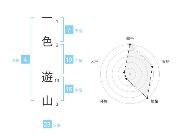 一色 遊山さんの総格は23画の5点!