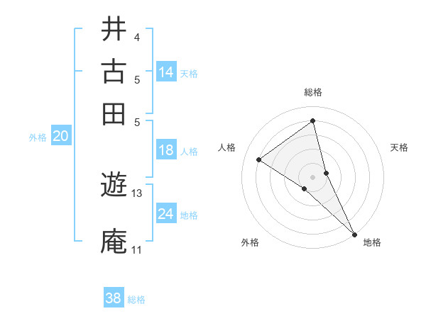 井古田 遊庵さんの総格は38画の4点!