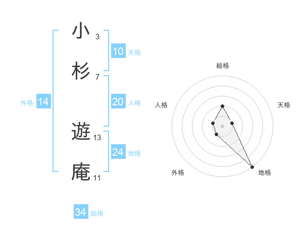小杉 遊庵さんを姓名の画数から五運を鑑定
