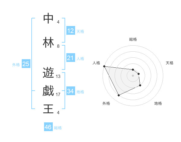 中林 遊戯王さんを姓名の画数から五運を鑑定