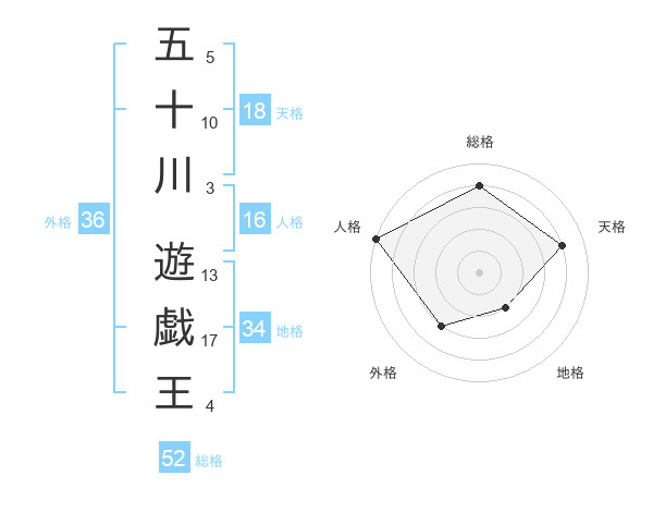五十川 遊戯王さんを姓名の画数から五運を鑑定