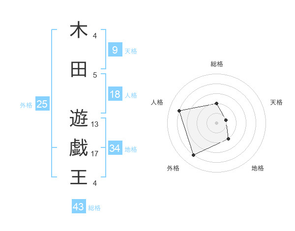木田 遊戯王さんの総格は43画の2点!