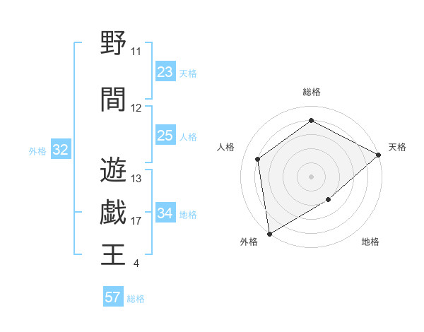 野間 遊戯王さんを姓名の画数から五運を鑑定