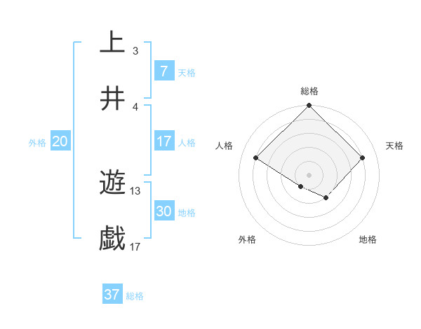 上井 遊戯さんを姓名の画数から五運を鑑定