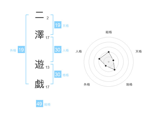 二澤 遊戯さんの総格は49画の2点!