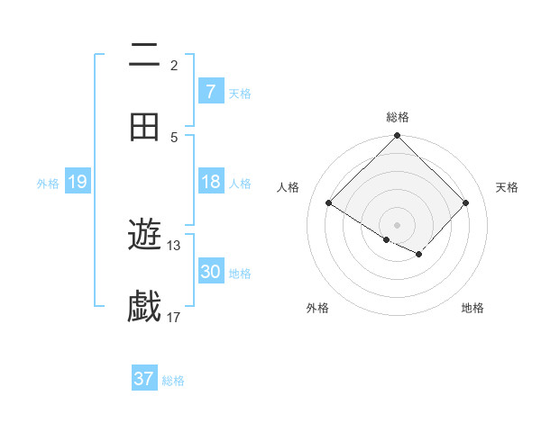 二田 遊戯さんを姓名の画数から五運を鑑定