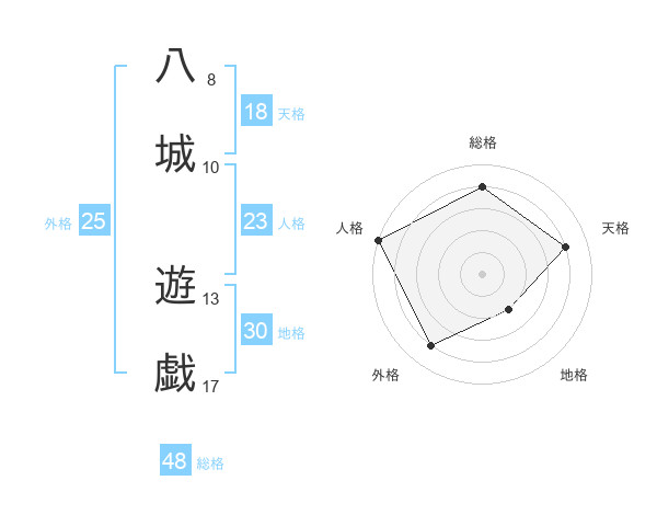八城 遊戯さんの天格は18画の4点!