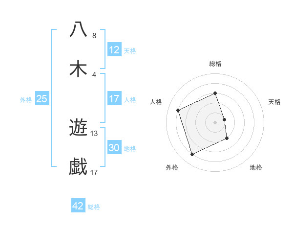八木 遊戯さんを姓名の画数から五運を鑑定