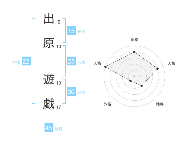 出原 遊戯さんを姓名の画数から五運を鑑定