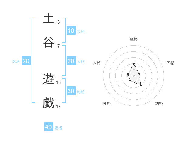 土谷 遊戯さんを姓名の画数から五運を鑑定