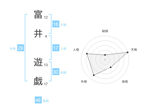 富井 遊戯さんを姓名の画数から五運を鑑定
