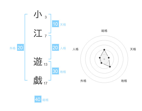 小江 遊戯さんを姓名の画数から五運を鑑定
