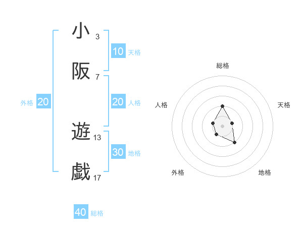 小阪 遊戯さんの総格は40画の2点!