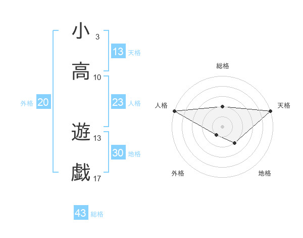 小高 遊戯さんの天格は13画の5点!