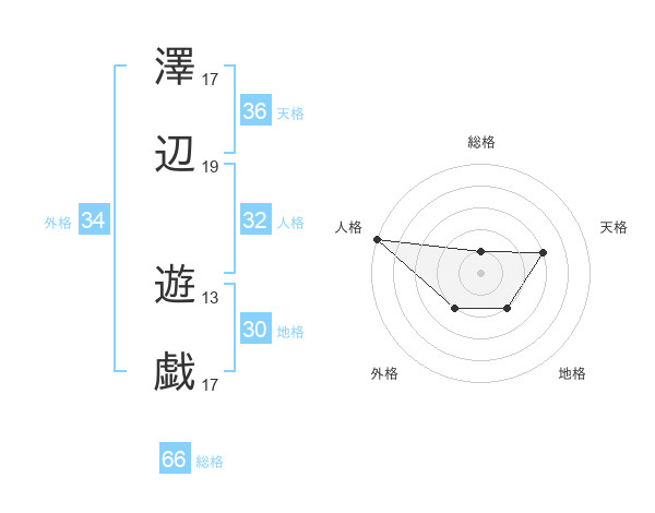 澤辺 遊戯さんの総格は66画の1点!