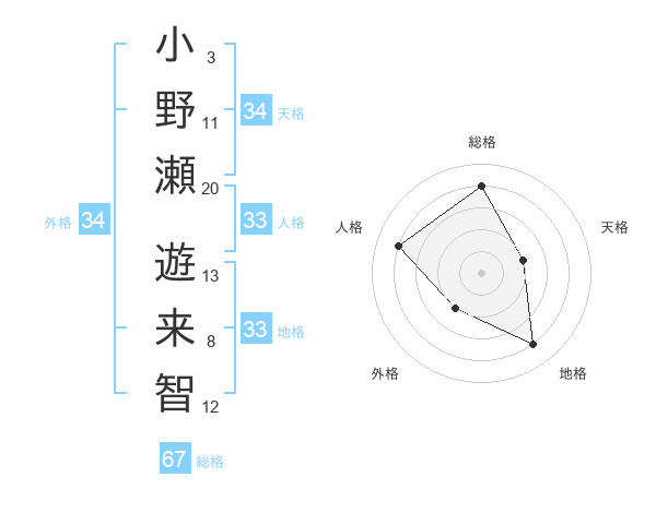 小野瀬 遊来智さんを姓名の画数から五運を鑑定