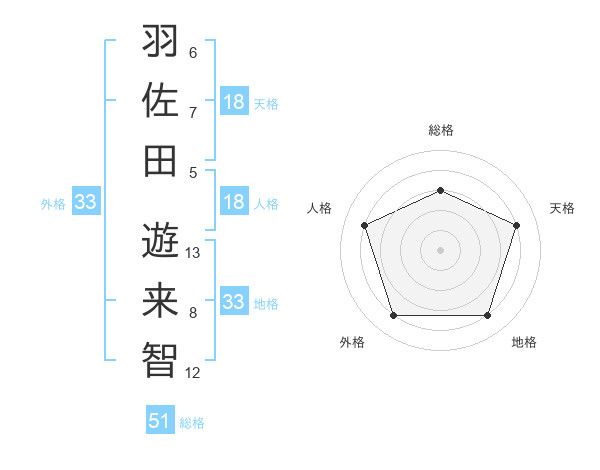 羽佐田 遊来智さんを姓名の画数から五運を鑑定