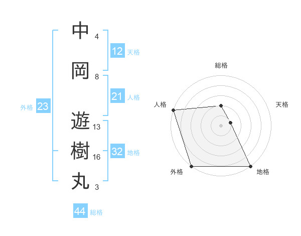 中岡 遊樹丸さんの総格は44画の2点!