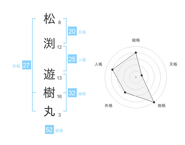 松渕 遊樹丸さんの総格は52画の4点!