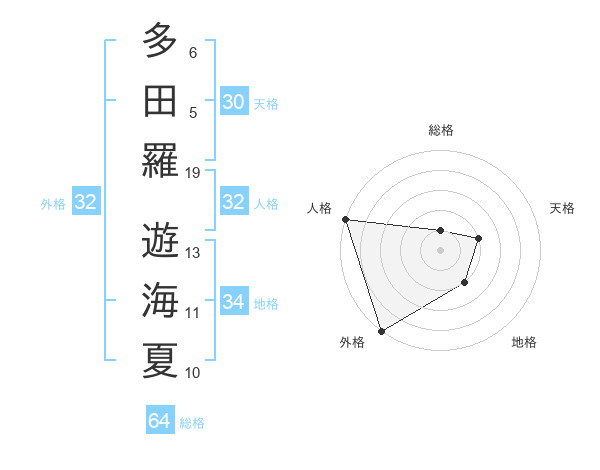 多田羅 遊海夏さんを姓名の画数から五運を鑑定