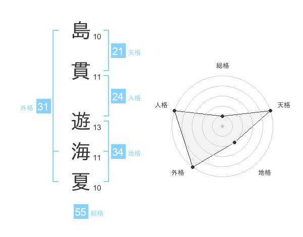 島貫 遊海夏さんを姓名の画数から五運を鑑定