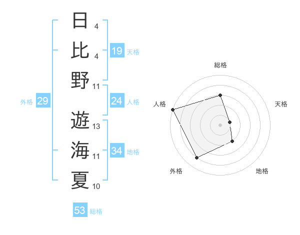 日比野 遊海夏さんの総格は53画の3点