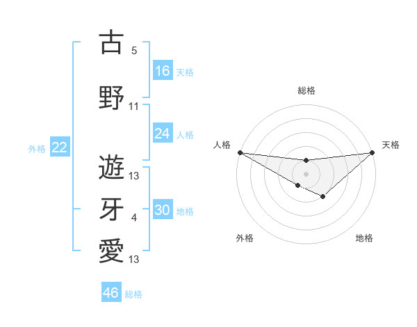 古野 遊牙愛さんを姓名の画数から五運を鑑定