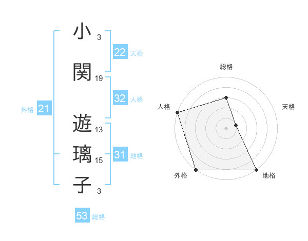 小関 遊璃子さんの総格は53画の3点!