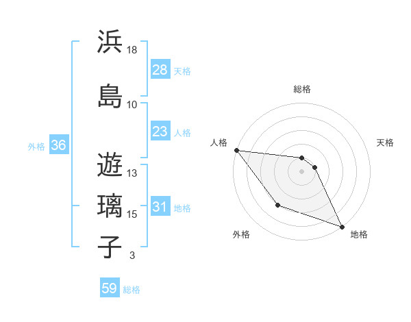 浜島 遊璃子さんを姓名の画数から五運を鑑定