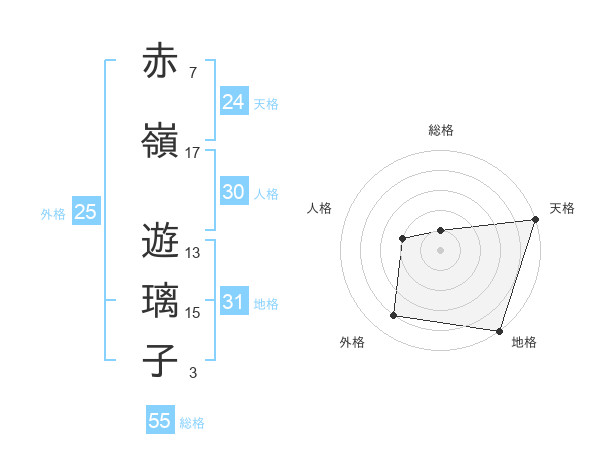 赤嶺 遊璃子さんの天格は24画の5点!