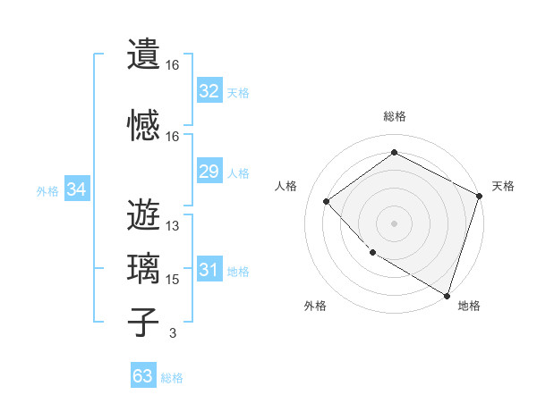 遺憾 遊璃子さんを姓名の画数から五運を鑑定