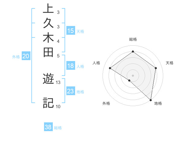 上久木田 遊記さんを姓名の画数から五運を鑑定