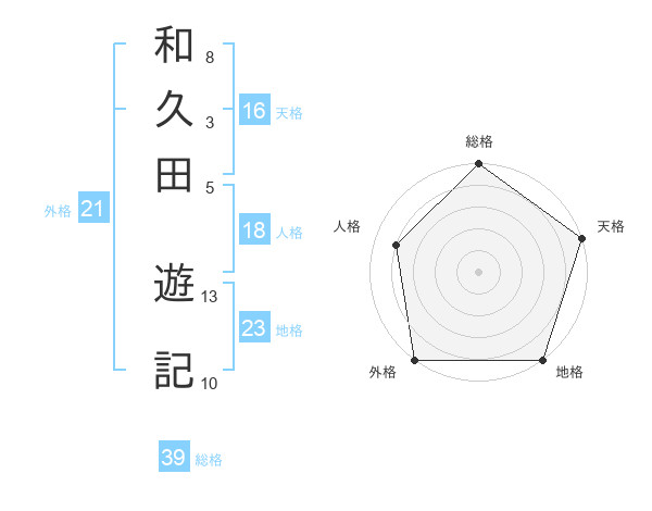 和久田 遊記さんを姓名の画数から五運を鑑定