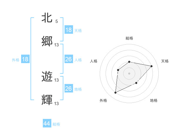 北郷 遊輝さんの天格は18画の4点!