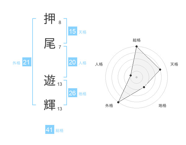 押尾 遊輝さんの総格は41画の5点!
