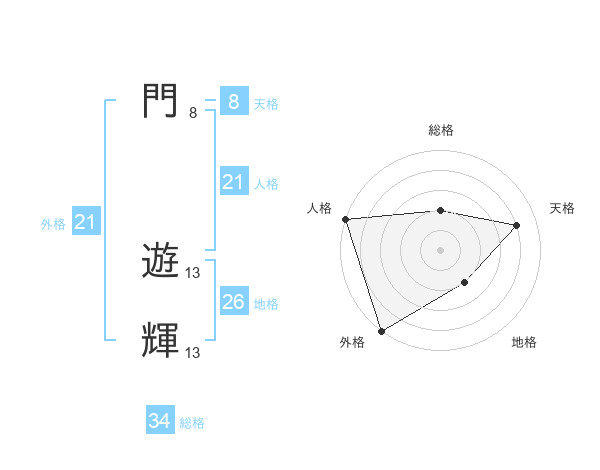 門 遊輝さんの総格は34画の2点!