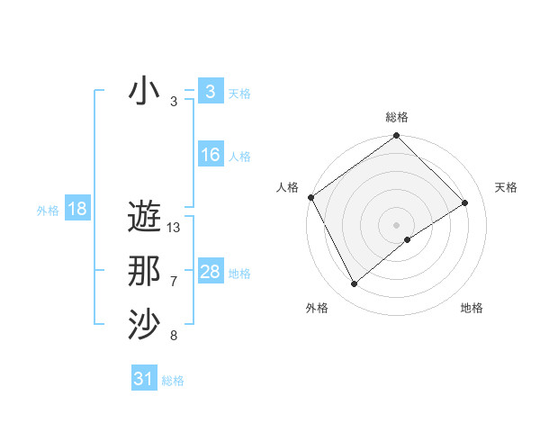 小 遊那沙さんの外格は18画の4点!