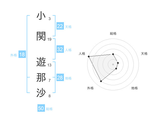 小関 遊那沙さんの総格は50画の2点