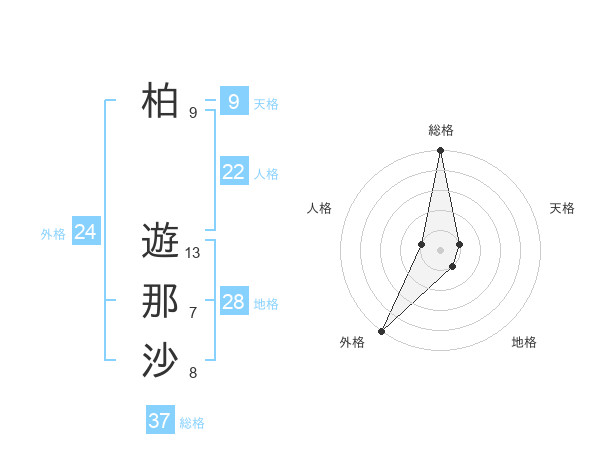 柏 遊那沙さんを姓名の画数から五運を鑑定