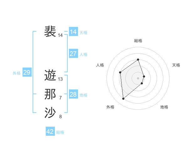 裴 遊那沙さんを姓名の画数から五運を鑑定
