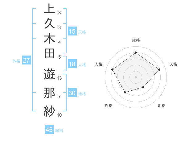 上久木田 遊那紗さんの総格は45画の4点!