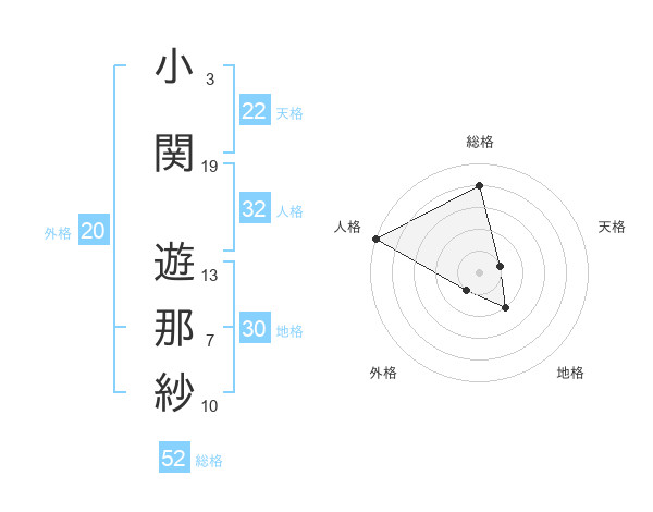 小関 遊那紗さんを姓名の画数から五運を鑑定